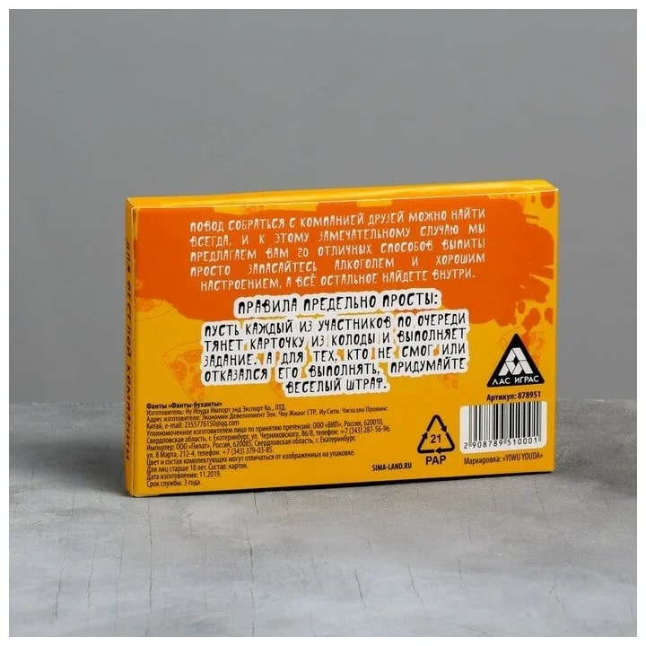Купить игра для компании "фанты буханты" 20 карт от 100 руб. с доставкой до пункта выдачи в Арамиле. Интернет магазин ДекаМаркет. Оплата при получении.